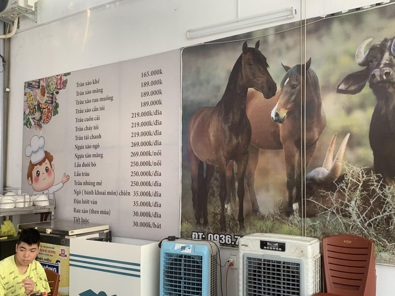 - Chuyên về thịt trâu tươi mới với các món : Trâu xào, Trâu cháy tỏi, Lẩu trâu nhúng mẻ, Trâu xào lá nốt, Trâu xào măng trúc, Trâu xào khế, Trâu hấp xì dầu, Đuôi trâu xì dầu, Xách trâu xào khế, Gân trâu, Bắp trâu bóp thấu.