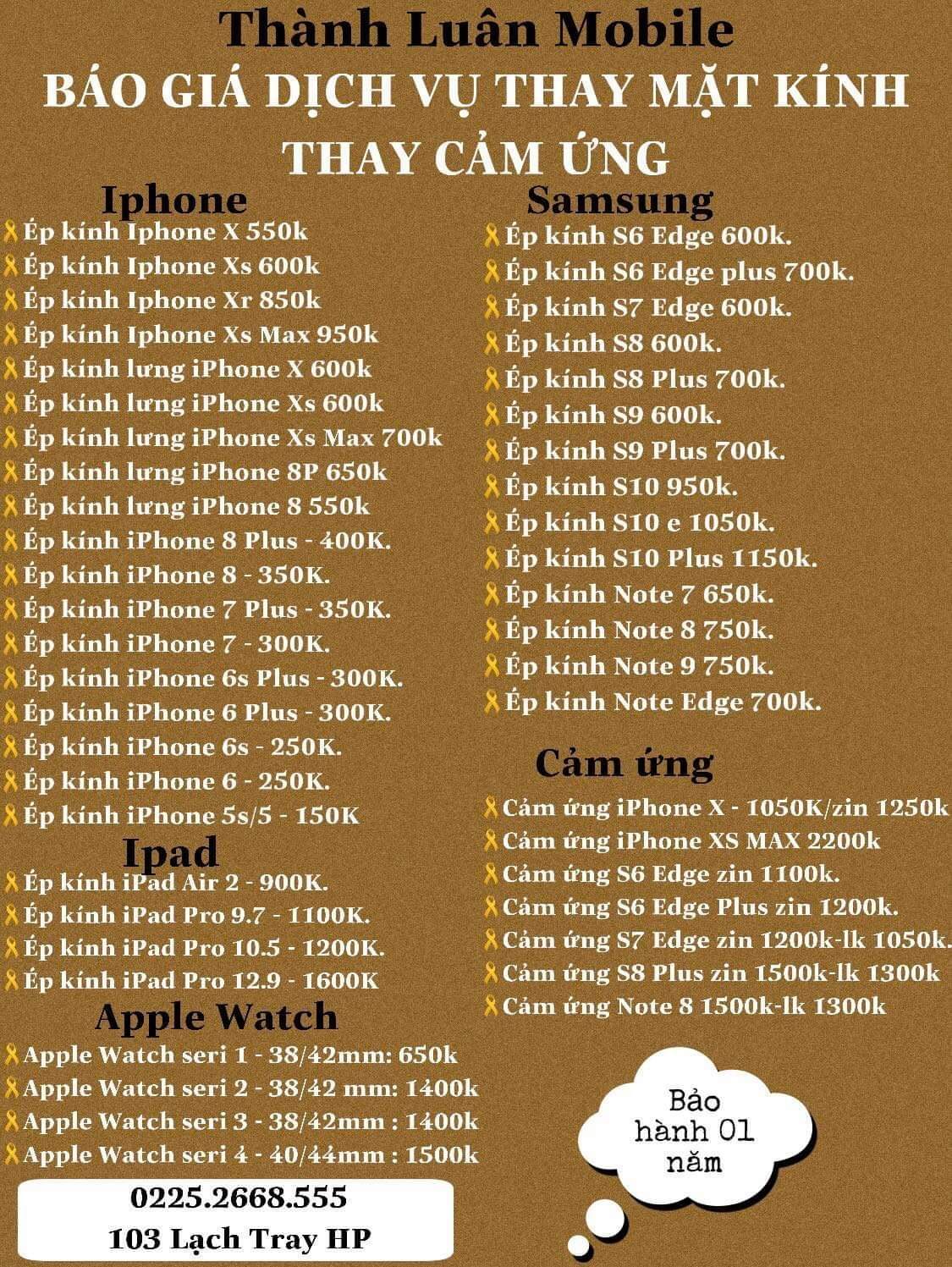 - Dịch vụ ép kính, thay màn hình, thay cảm ứng cho các dòng điện thoại chính hãng.