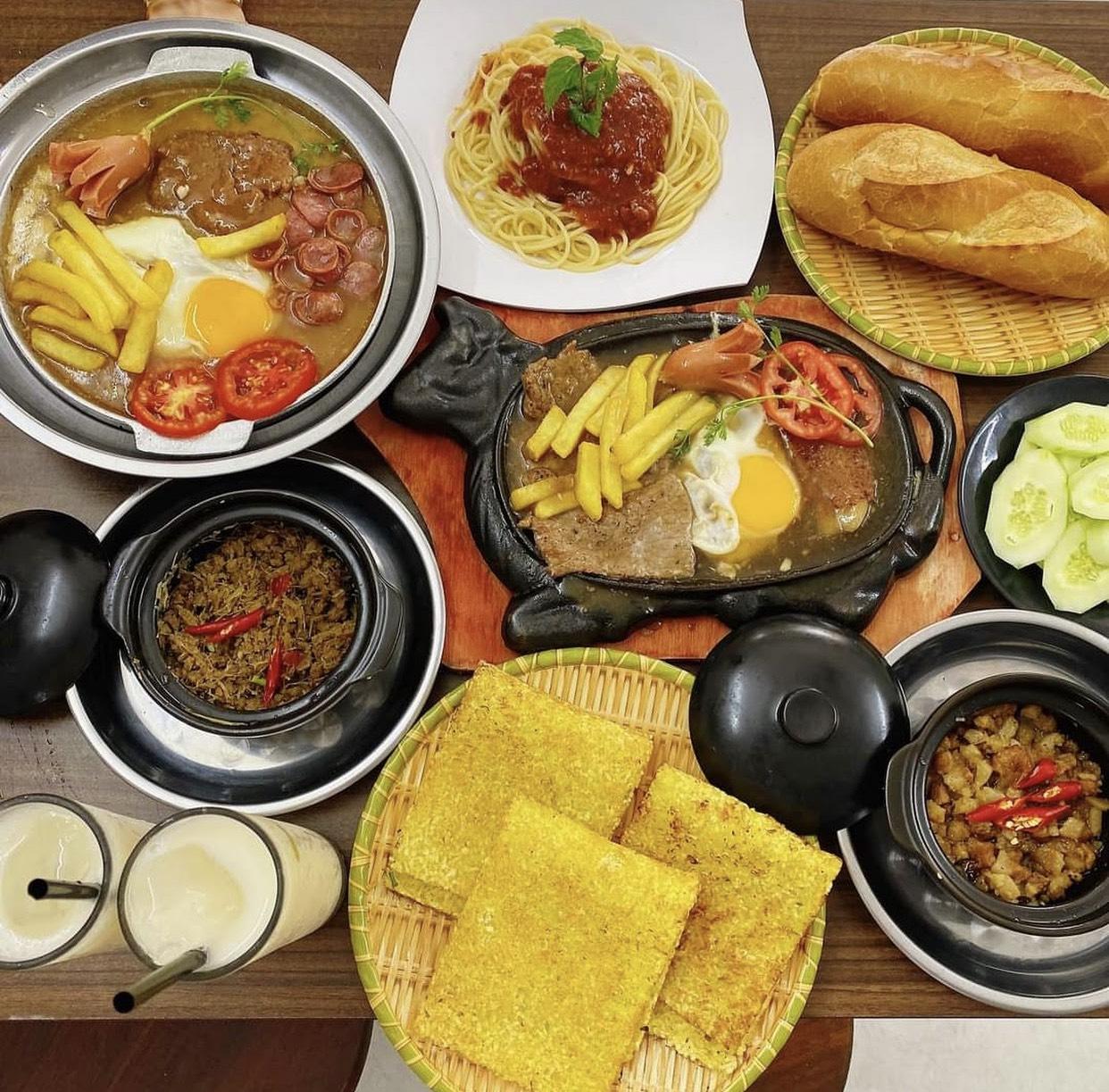 - Phục vụ điểm tâm sáng: Bò bít tết, khoai tây chiên, bánh mì chảo..